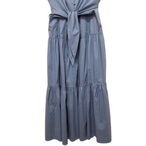 Lauren Ralph Lauren Sleeveless Tie Front Tiered Blue Midi Dress Womens Sz 16