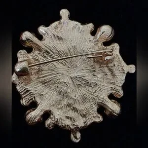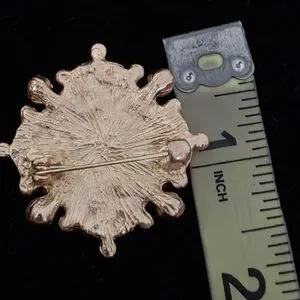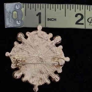 Vintage Baroque-style Blue and Gold Tone Floral Brooch With Faux Pearl 1.5"x1.5"
