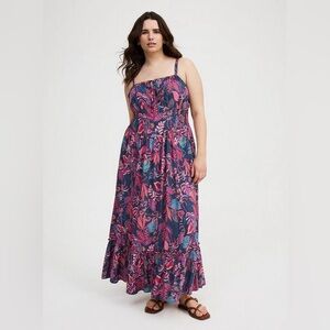 Plus Size Challis Smocked Floral Maxi Dress in Pink and Blue Torrid with Pockets