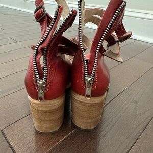 Simple, but never boring - RANDI. Designed with an open construction, this mid-heel shoe creates a clean feminine silhouette with its leather ankle straps and round toe. Finished with metal adjustable buckles and a back zip closure.