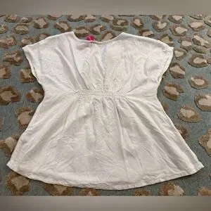 Lilly Pulitzer White Cover Up with Pink Embroidery