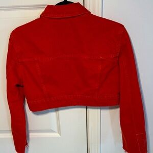 Zara Women's Red-Orange Cropped Denim Jacket Size Small