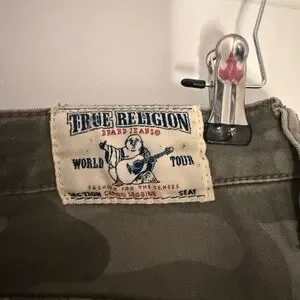 Stylish khaki cargo leggings. Features iconic True Religion branding.