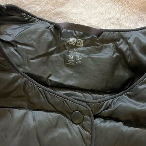 Stylish darkngreenncollarless puffer vest. Lightweight and warm. Perfect for layering. Like new.