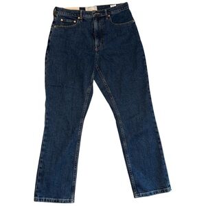 Chic and versatile straight leg jeans. Dark blue hue. Perfect for everyday wear.