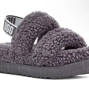 UGG Charcoal Fluffy Slippers 5/6 Shoe Sz