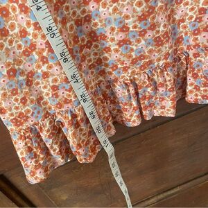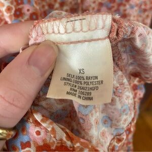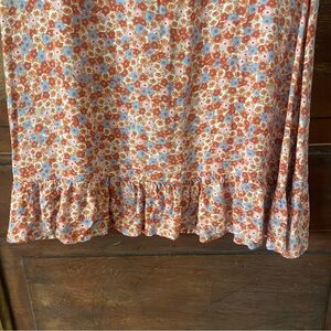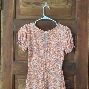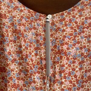 Stylish dress with vibrant floral pattern. Features a mix of red and blue hues.
