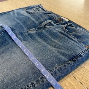 Low stretch medium blue wash denim with a vintage look some intentional distressing.