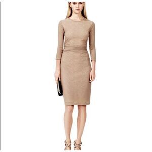 Reiss Zoe fitted ruched dress. Scoop neck. Polyester. Color is called soft cappuccino. Worn twice. Excellent condition. Size 8