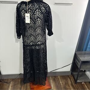NWT DX Collection Size S Black Eyelet Lace Pullover Nero Maxi Dress Elegant Chic