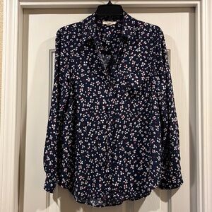 Beach lunch lounge Navy Floral Button Down Shirt size M like new