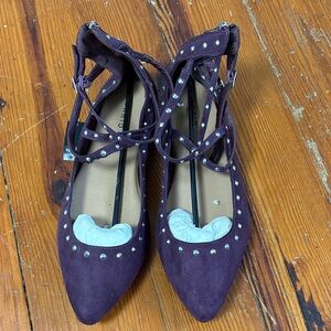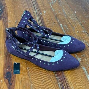 NWT Torrid Women's Dark Purple Flats Strappy Studded Size 11.5