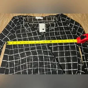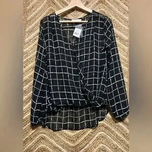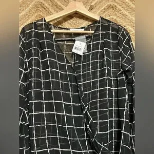 Lush Women's Sheer Black and White Checkered Blouse, Long Sleeve, Size M, NWT