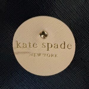 Kate Spade Cedar Street storybook navy and white large polka dot tote bag. Some callouts in pictures are little peeling on the edge, some light black and red smudges in 2 spots.