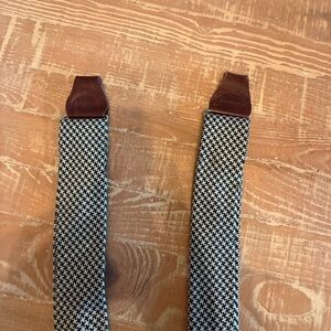 They feature a classic black and white houndstooth pattern on the fabric straps and brown leather accents where the straps connect. These types of accessories are often described as classic or vintage Polo Ralph Lauren merchandise.
