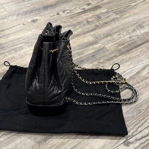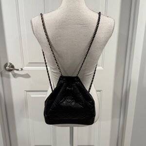 CHANEL Gabrielle Mini Backpack Chain Bag in Quilted Black Leather