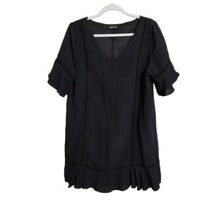 Fab'Rik Black Dress V-Neck Ruffle Flutter Sleeve Polyester, sz Lg