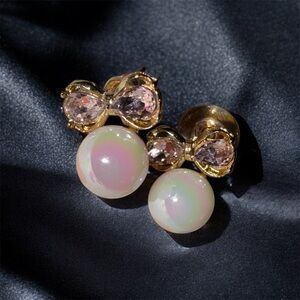 🎀Gold & Pink Bow 🎀Faux Pearl Stud Earrings