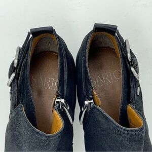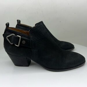 Franco Sarto Heeled Moto Boots Ankle Booties Black Leather Boho Western Fall