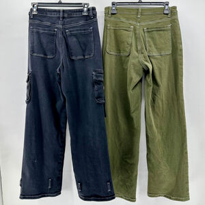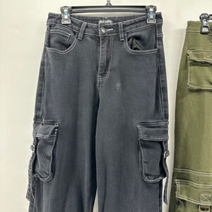 HOT TOPIC Y2K Black Cargo Jeans JR GIRLS TEEN 5 Baggy Punk Goth Steam Grunge LOT