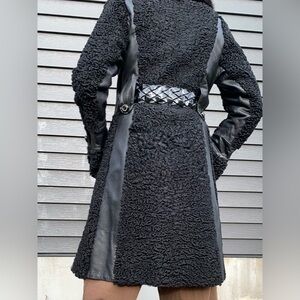 Vintage, Black Double-Breasted Persian Lamb Coat w/ Mink Collar&leather detail.