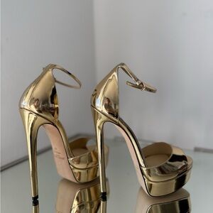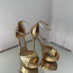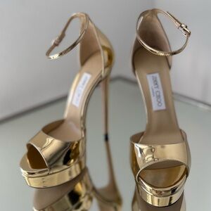 New Jimmy Choo Max 150 Leather Platform Sandals Liquid Gold $1,095 38