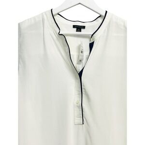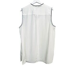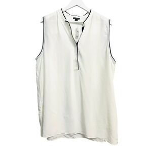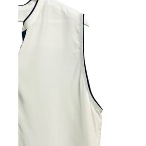 Ann Taylor Sleeveless Blouse Womens 2XL White Navy Trim Button Front Rayon Top