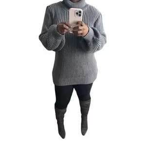 This sweater is absolutely gorgeous . Has a slight bubble sleeve and is nice and thick . This would be super cute with leggings and booties . Looks more on the pricey end , awesome quality .