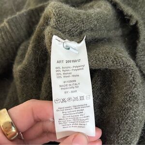 Soft, cozy by-bar Amsterdam knit sweater in a beautiful earthy green tone. Made in Italy with a luxe mohair and wool blend, this sweater has a relaxed, slouchy silhouette with a flattering wide neckline that can be worn slightly off-shoulder.