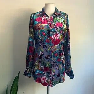 Johnny Was Vibrant Multicolor Floral Shirt