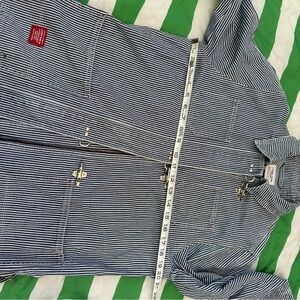 RALPH LAUREN fireman toggle closure chore coat in railroad stripe denim