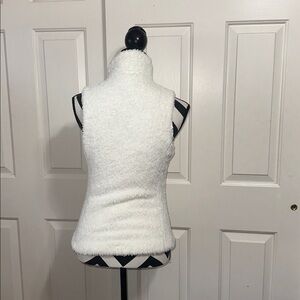 Experience warmth with this plush white vest. Ideal for layering in chilly weather.