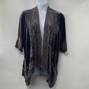 Johnny Was Women's Velvet Velour Kimono Embroidered Floral Gray Jacket Size M