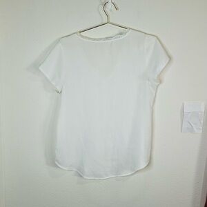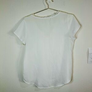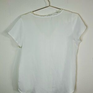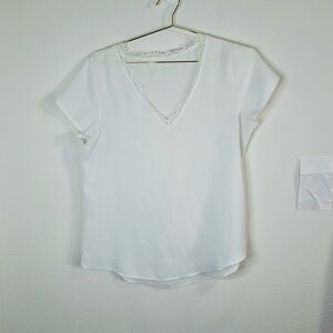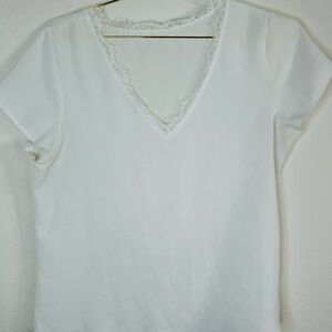 Unbranded White V-Neck Blouse with Lace Trim - Size Large Lightweight Top
