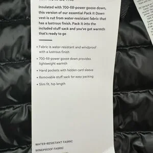 Brand new with tags Lululemon Pack It Down Vest in the Lustre finish, women’s size 10.