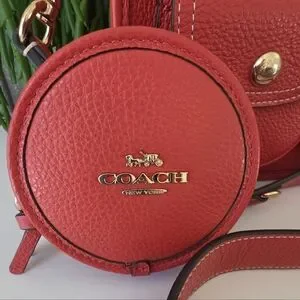 Coach Pennie Crossbody Bag w/ Coin Purse Mango Red Pebbled Leather