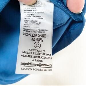 Saks Fifth Avenue X Majestic Filatures superwashed soft touch cropped sleeve scoopneck top in blue. Size small.