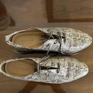 Cole Haan Women's Snake Skin Textured Black Lace-Up Flats