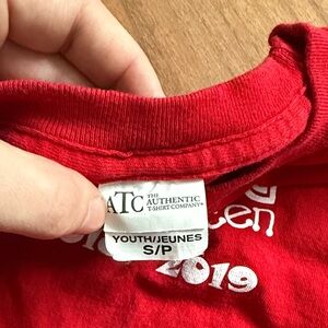 Vibrant red tee with playful kindergarten text. Perfect for young adventurers.