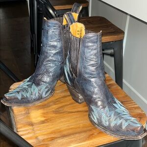 Old Gringo Blue Ankle Boots featuring Embroidered Design. Size 8