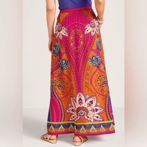 NWOT Soft Surroundings Marguerite Maxi Skirt In Bora Bora Scarf Print Medium