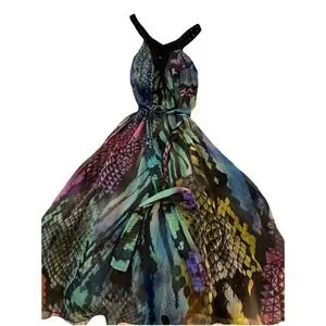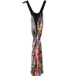 Matthew Williamson 100% Silk Print Dress Lace Up Front Belted Sleeveless 10