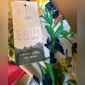 Cacique NWT Swimdress No Wire High Neck Patchwork Adjustable Straps Size 24