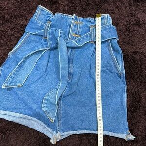 Stylish denim shorts with a chic tie-waist design. Perfect for casual outings. Features a classic blue color for versatile styling.