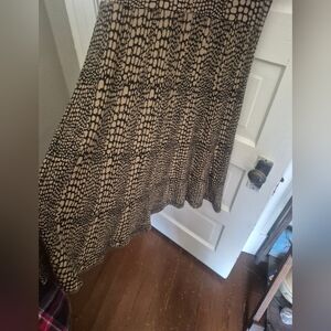 Chic midi dress with a bold black and cream pattern. Perfect for versatile styling.