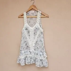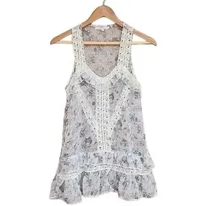 RUBY ROSE Lace Tank Top Small S Eyelet Ruffle Hem Cottagecore Fairy