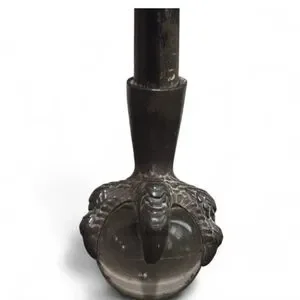 Exceptional and rare turn-of-the-century crystal ball cane featuring a dramatic dragon-claw finial holding a pressed-glass sphere. This is not a reproduction or novelty piece—this is an authentic early 1900s gentleman’s parlor cane, crafted with a sculpted cast-metal claw (likely brass/bronze with an aged patina) and a long ebonized hardwood shaft.