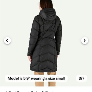 Elegant and warm puffer coat. Features a quilted design. Ideal for cold weather.