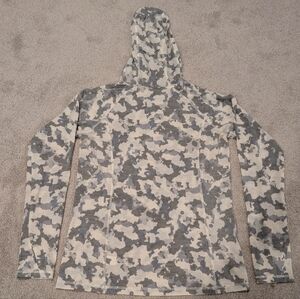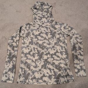 Outdoor Research went ahead and made the ultimate adventure hoodie: the Alpine Onset Merino 150 Hooded Baselayer Top. The merino wool and polyester blend is lightweight, naturally repels odors, and wicks away our sweat to keep us feeling fresh on multi-day trips or afternoon runs down the mountain. Plus, this hoodie is breathable and quick drying for next-to-skin comfort. No matter what the weather throws at us, we know we can handle it with the hood, thumbholes, and built-in balaclava providing full coverage from both the sun and the cold. The colors in the camo pattern are beige, light gray, and charcoal gray.