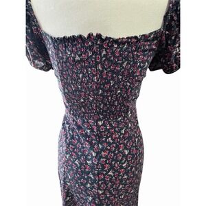 Milkmaid Coquette Girl Square Neck Puff Sleeve Smocked Midi Dress Women's Size M